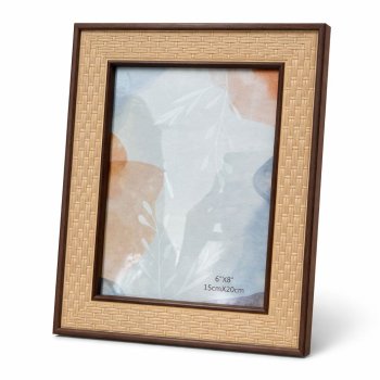 Porta-retrato 15x20 cm com moldura em acabamento amadeirado, design moderno e elegante. Ideal para fotos 6x8”, perfeito para decorar salas, quartos, escritórios ou presentear com estilo e delicadeza.